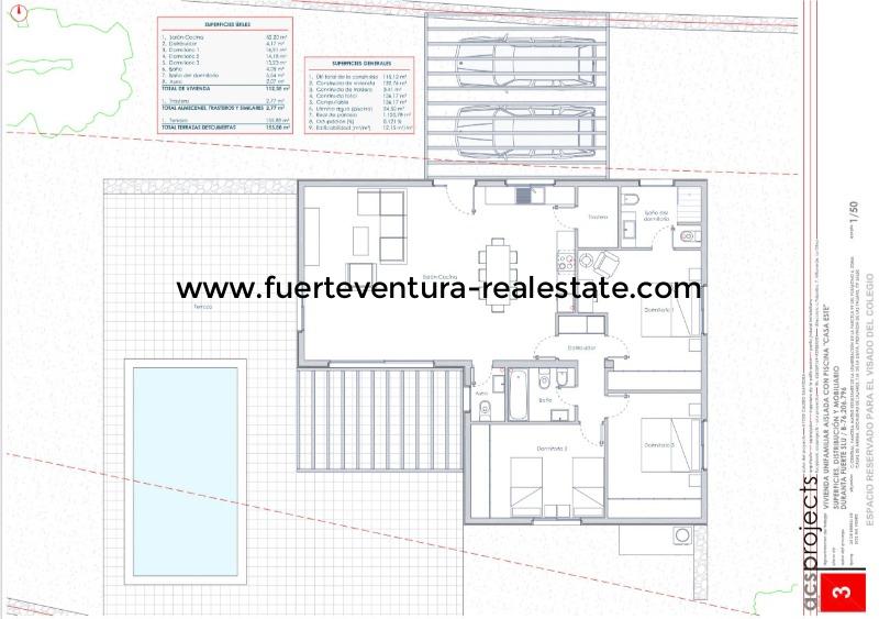 Nieuw gebouwde villa te koop in het dorp Lajares, ten noorden van het eiland gelegen, nabij de Ermita de San Antonio, een van de belangrijkste bezienswaardigheden van de plaats.