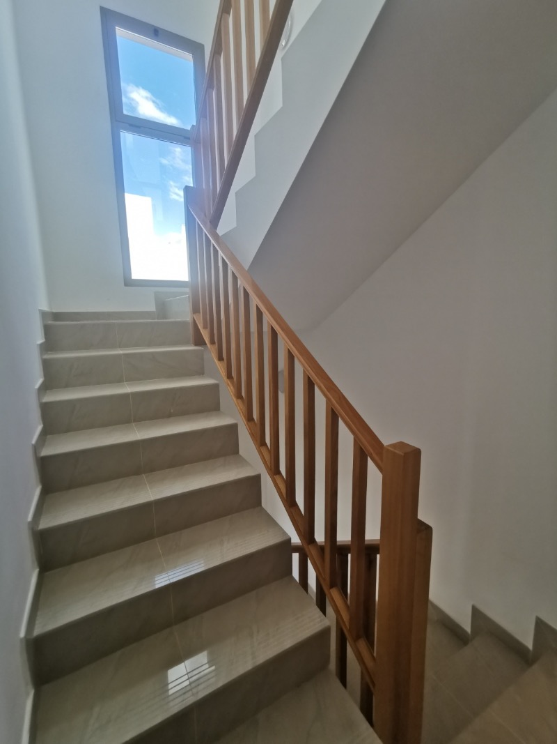 Ground floor with gate and front terrace, driveway. Living-dining room with access to the terrace. Guest bathroom. Large and functional kitchen with Italian cabinetry, granite countertops, and appliances included. The kitchen has been extended, exceeding the original 106 m² built area. Direct access to the driveway from the kitchen. First floor with master bedroom, en-suite bathroom, and private balcony.